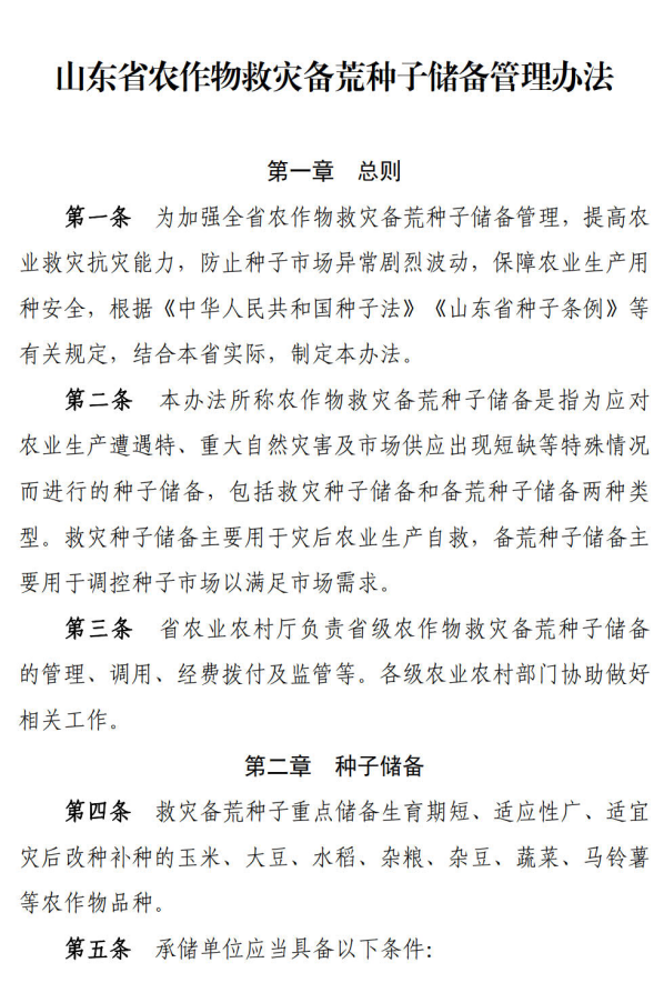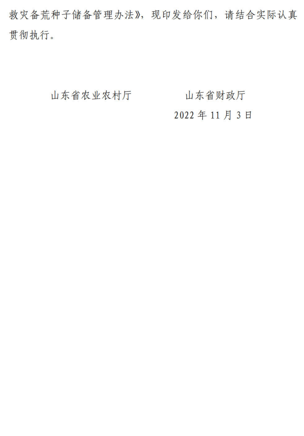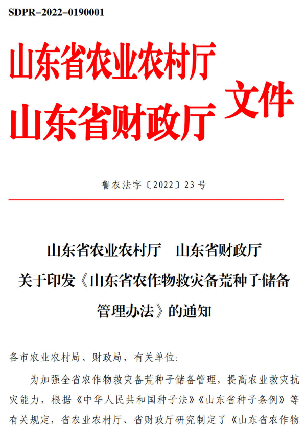 济农字〔2022〕117号 关于转发《山东省农业农村厅 山东省财政厅关于印发<山东省农作物救灾备荒种子储备管理办法>的通知》的通知
