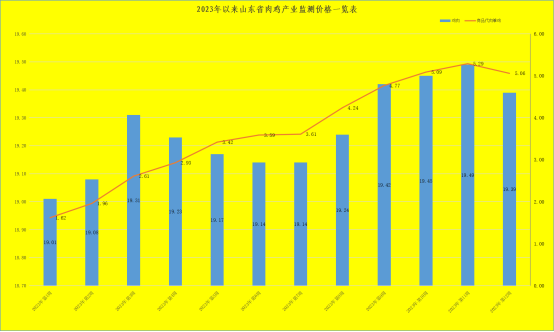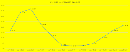 第12周,我省鸡蛋价格继续回升。本周,我省鸡蛋销售平均价格为10.46元/公斤,同比升高11.40%,环比回升1.85%。就全省监测的26个价格县来看,本周我省最高价在青州市,为11.00元/公斤;最低价出现在阳信县,为9.60元/公斤。