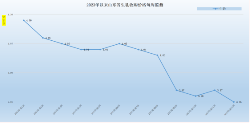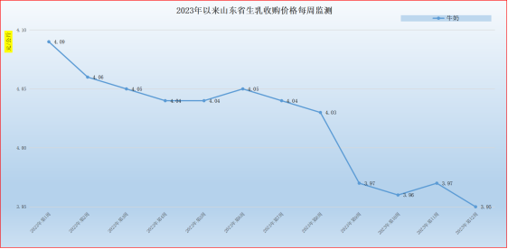 第12周(3月20日-3月26日),生乳价格震荡回落。第12周我省生乳均价为3.95元/公斤,同比降低6.18%,环比降低0.50%。在我省监测的26个县中,剔除3个无效数据,有9个县的价格大于或等于全省平均价格,有14个县的生乳价格低于全省平均价格。其中最高价格在蓬莱市,为4.80元/公斤;最低价格出现在招远市和兰山区为3.60元/公斤,最高价与最低价差值为1.20元/公斤,差价与上周相比持平。