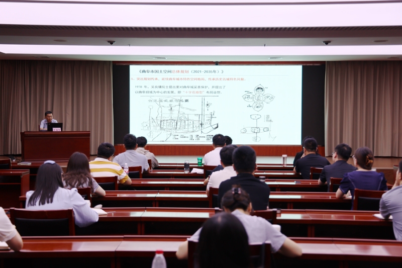 曲阜市城乡规划中心副主任王海青立足曲阜文化特色、自然本底和阶段特征,就如何坚持文化引领,高质量编制曲阜国土空间规划进行了讲解,同时介绍了《曲阜市蓼河商业街区地段更新暨夜游品质提升设计》《曲阜市尼山镇夫子洞村村庄规划》《曲阜尼山镇鲁源村项目(尼山圣境二期核心区)详细规划》3个优秀规划案例。