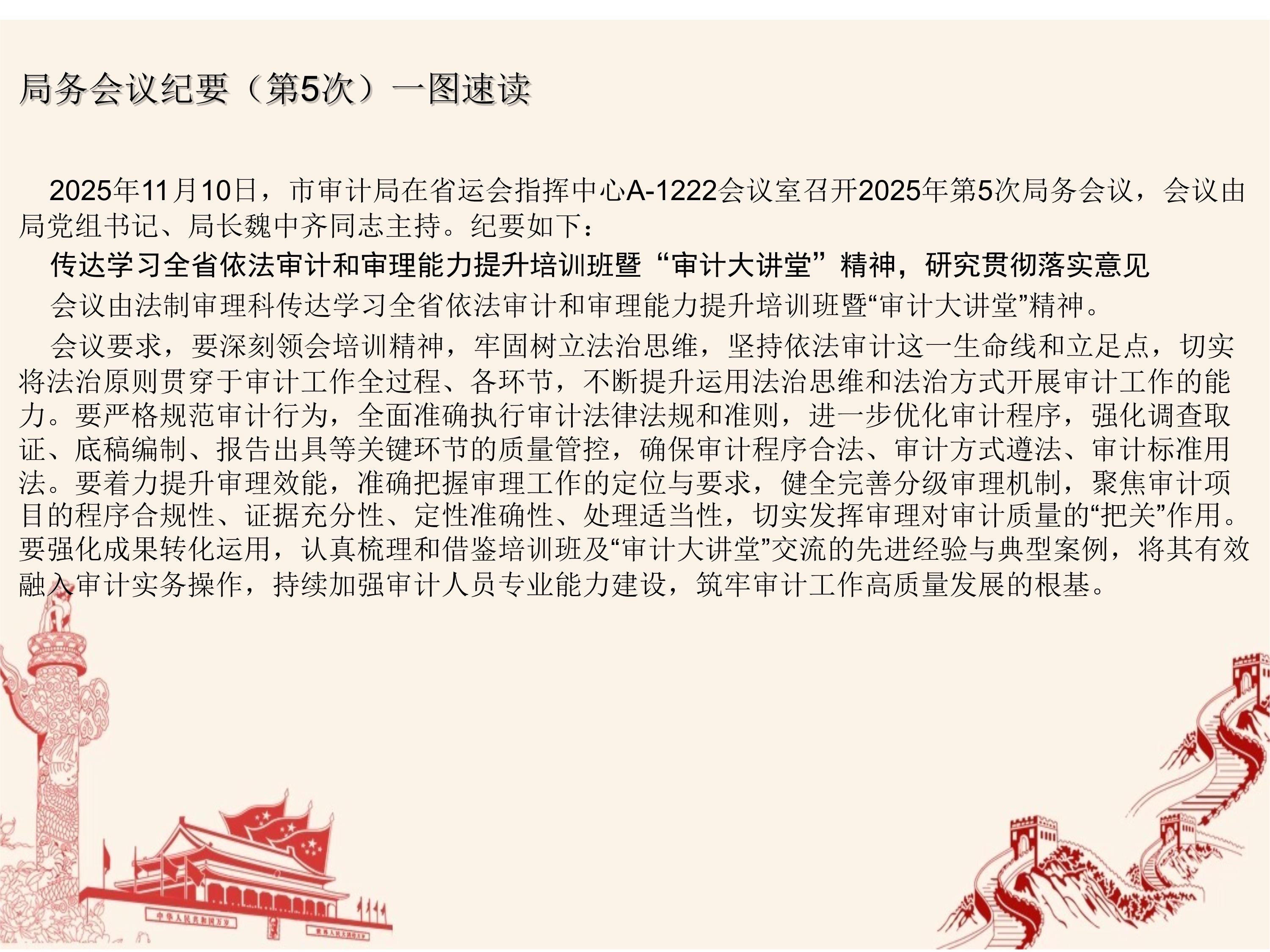 【一图速读】济宁市审计局2025年第5次局长办公会会议纪要