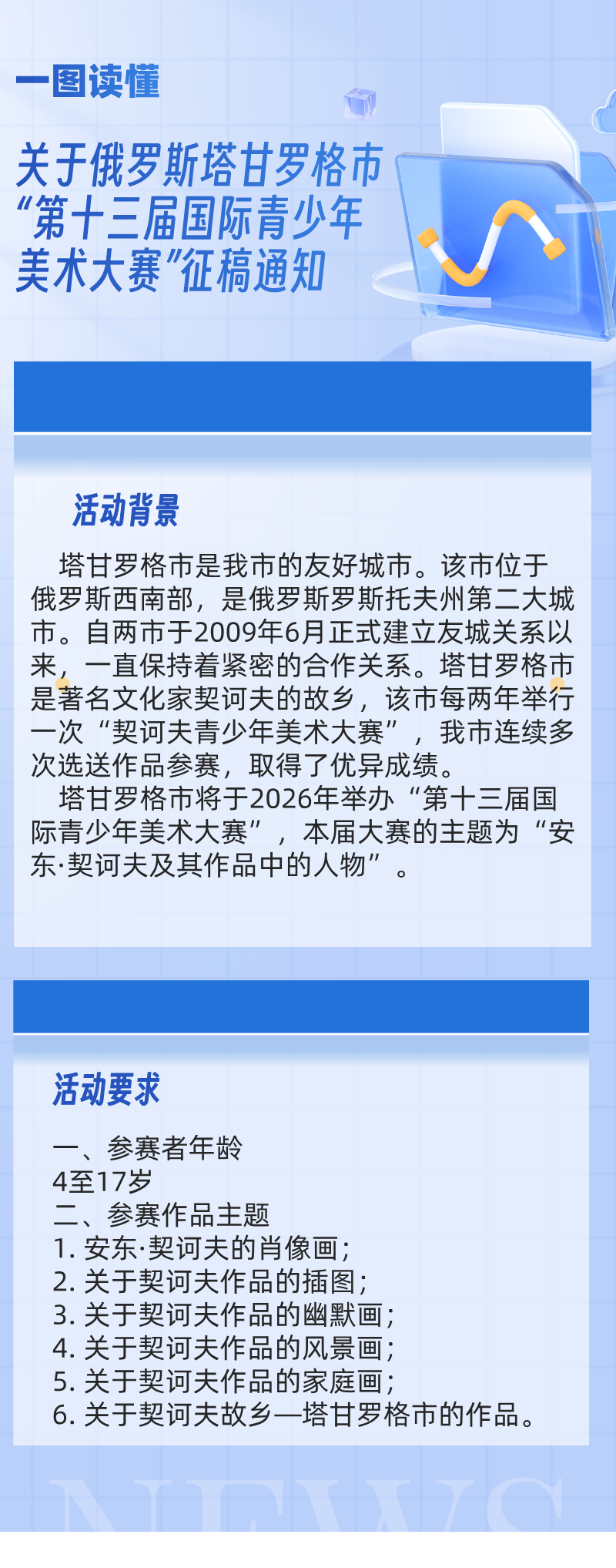 图文解读-俄罗斯塔甘罗格市“第十三届国际青少年美术大赛”征稿通知