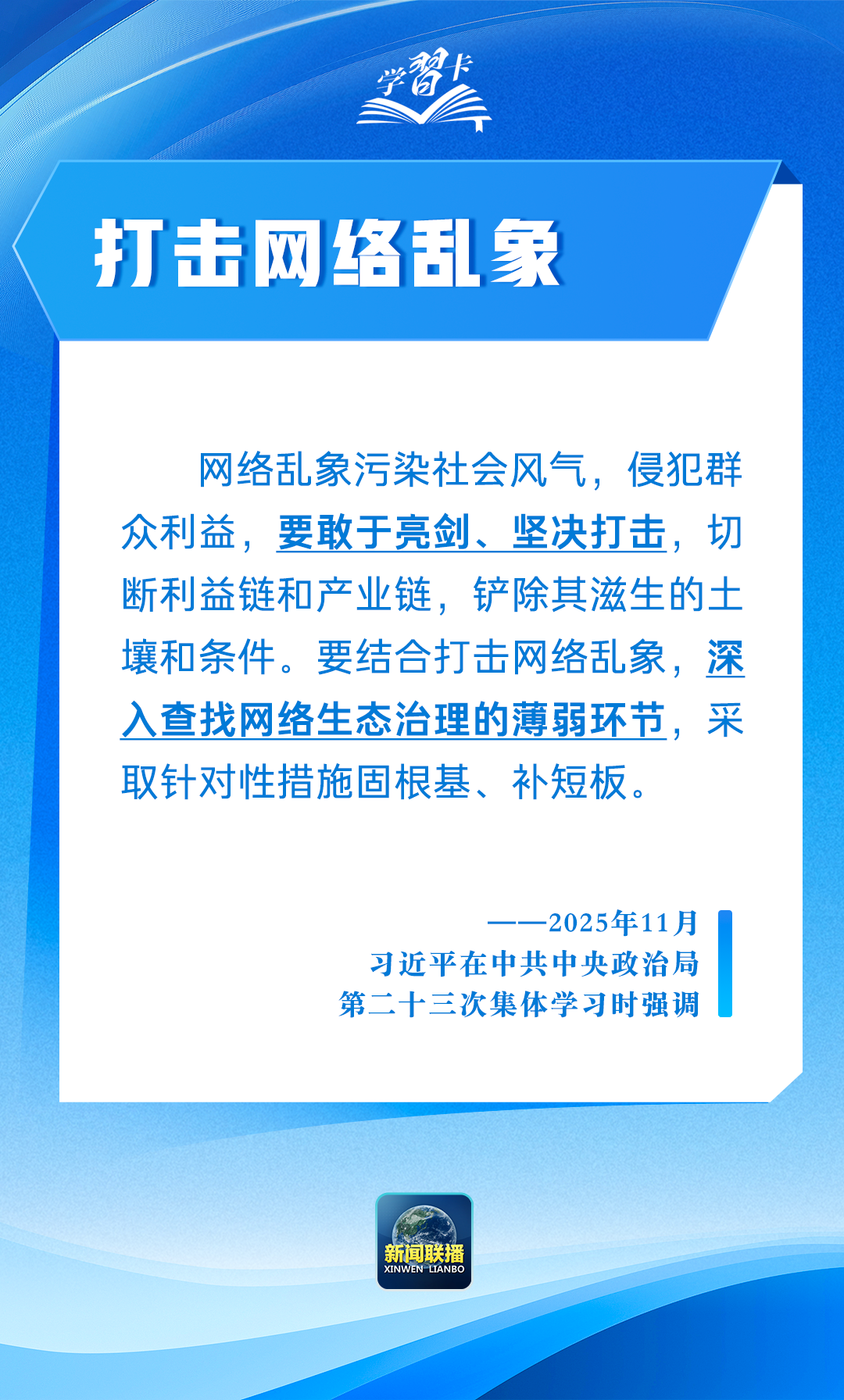 近日,习近平总书记在中共中央政治局第二十三次集体学习时发表重要讲话,对网络生态治理这一网络强国建设的重要任务作出战略部署、提出明确要求。