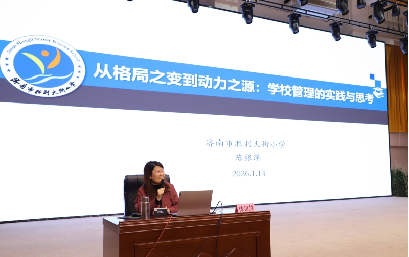 济南市胜利大街小学校长陈银萍以《新时代学校治理的变革逻辑与创新实践》为题做了专题报告。她从宏观教育格局变迁切入,深刻剖析了当前学校发展面临的机遇与挑战,系统阐述了以“全学科阅读”实施学科育人的课程体系建构逻辑,分享了在教师专业成长赋能、教学与德育深度融合管理等领域的探索与研究。报告既有对教育规律的深刻把握,又有教学实践的具体路径和培育时代新人的策略,为提升全市小学教学管理水平和育人实效提供了借鉴。