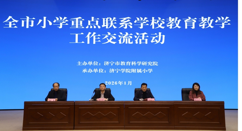 为系统总结我市小学重点联系学校工作经验,科学谋划部署下一阶段工作重点,1月16日下午,全市第六批小学重点联系学校教育教学工作交流活动在济宁学院附属小学举办。市教科院党委书记、院长蒋浩然出席活动并讲话,市教科院副院长祝成彦主持活动。