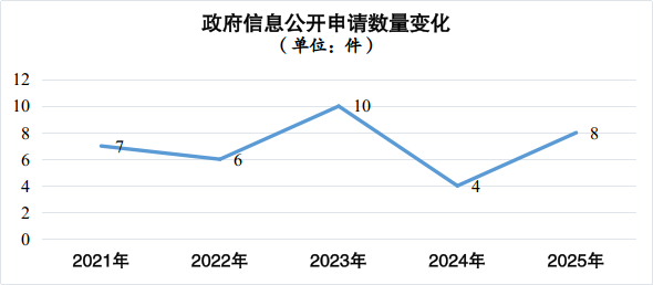 (二)依申请公开情况 持续做好流程优化,进一步规范依申请公开“登记-会商-办理-审核-答复”程序。共收到政府信息公开申请8件,已答复7件,结转下年度继续办理1件;全年政府信息公开行政复议0件,行政诉讼0件。