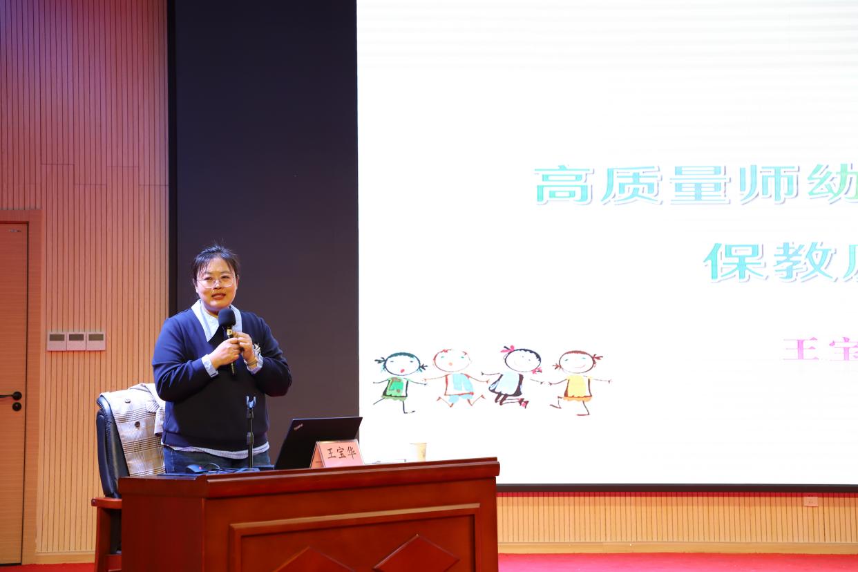 齐鲁师范学院王宝华教授作了题为《高质量师幼互动促幼儿园保教质量提升》的学术报告。王教授从理论解读与实践策略两个层面展开,系统解读了高质量师幼互动七条核心标准,并结合具体案例,深入剖析了三种常见的师幼互动类型,分享了儿童语言平行介入、基于“相信与质疑”理论的对话策略以及引导持续问题解决的冲突应对方法等多种实用策略,为提升日常保教工作的互动质量提供了专业指引。