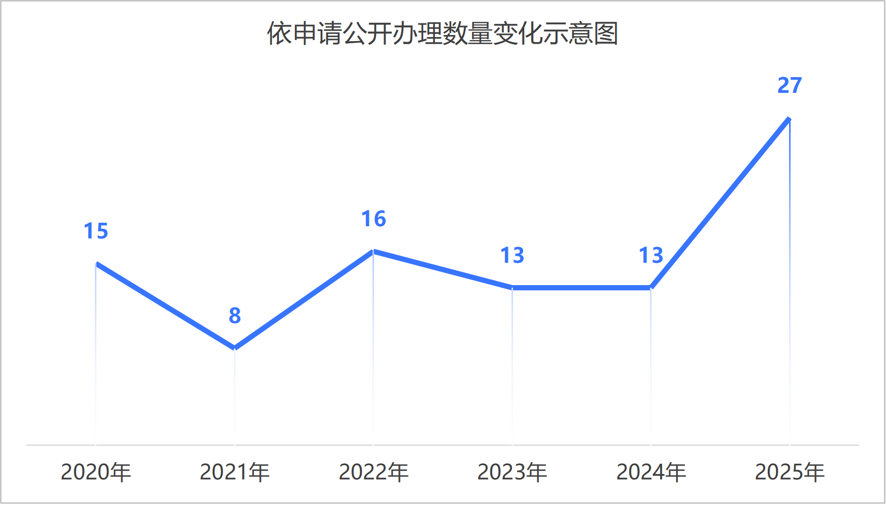 坚持把依申请公开作为服务公众的重要方式,持续完善依申请公开工作流程,注重办理过程中与申请人的沟通,及时准确为申请人提供信息需求,提高答复质效。2025年,共办理政府信息公开申请27件,数量较上年翻倍;其中,26件在3个工作日内答复办结。