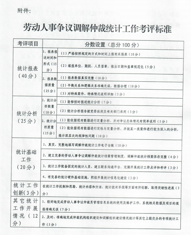 附件:《劳动人事争议调解仲裁统计工作考评标准》