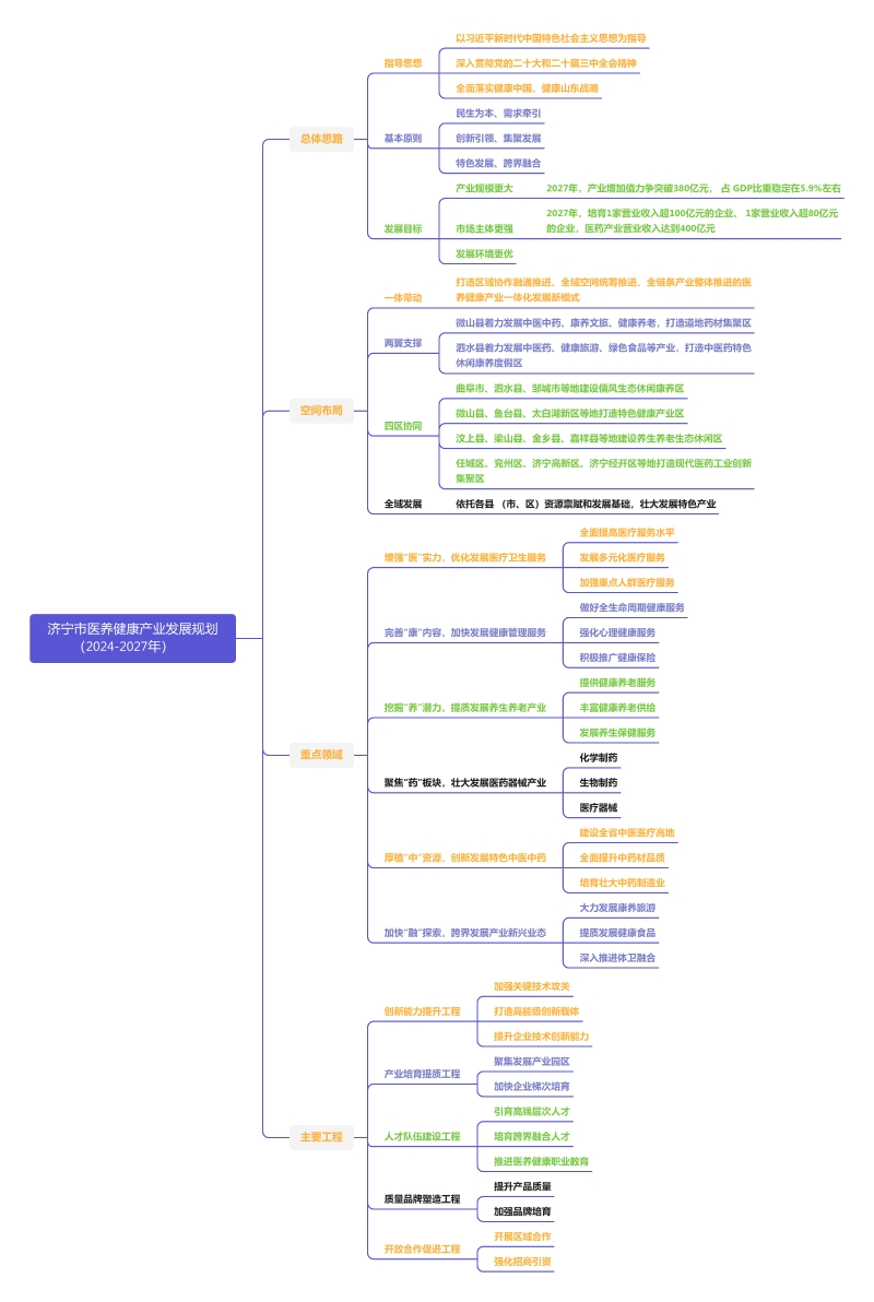 思维导图原文速览丨《关于印发济宁市医养健康产业发展规划(2024—2027年)的通知》