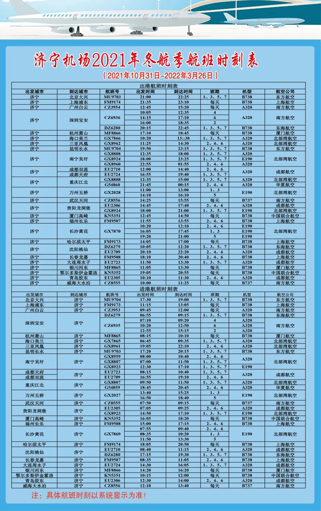 济宁机场航班换季预告