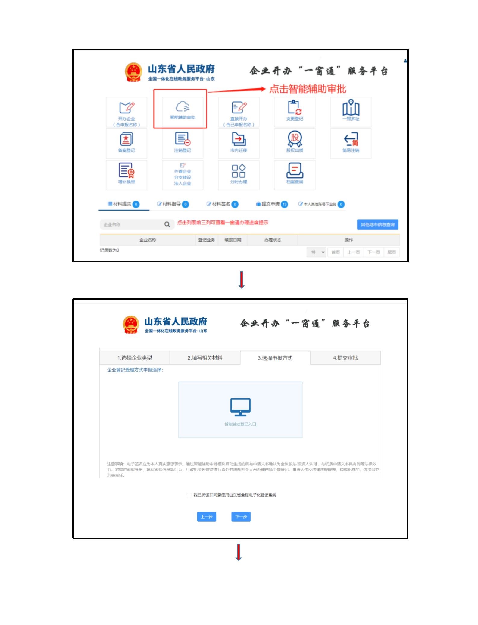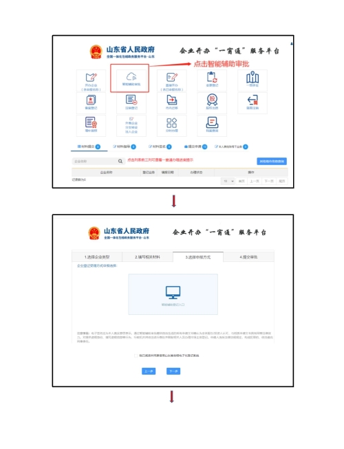 使用流程:访问企业开办“一窗通”服务平台→企业名称自主申报→智能辅助审批→填写企业信息→选择“智能辅助登记入口”申报方式→法人股东电子营业执照信息自动提取共享。