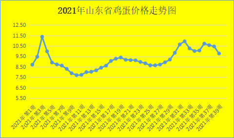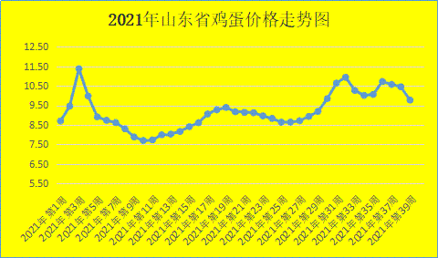 我省鸡蛋价格继续承压下行,跌破“10元”区间。第39周,我省鸡蛋销售平均价格为9.77元/公斤,同比升高19%,环比回落6.51%。就全省监测的26个价格县来看,目前我省最高价为11.08元/公斤,最低价为9.00元/公斤,蛋鸡配合料价格与上周相比略增。蛋雏鸡价格继续回落,第38周为3.16元/只,同比升高3.95%,环比回落2.47%。