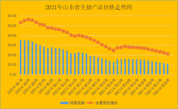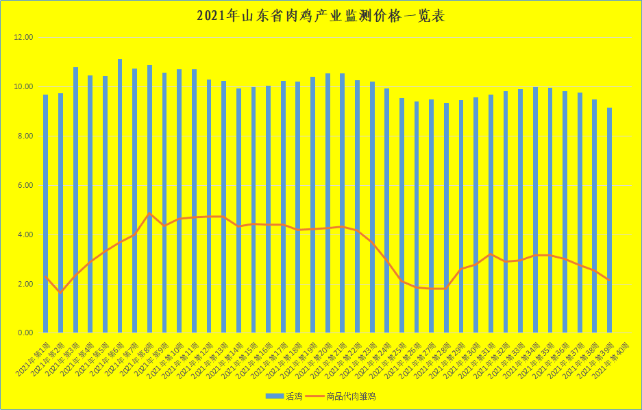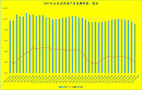 截至第39周末,我省肉雏鸡均价为2.14元/羽,同比升高50.70%,环比回落15.42%,其中最高价地区是即墨区为7.00元/羽,最低区域价格聊城莘县0.50元/羽。