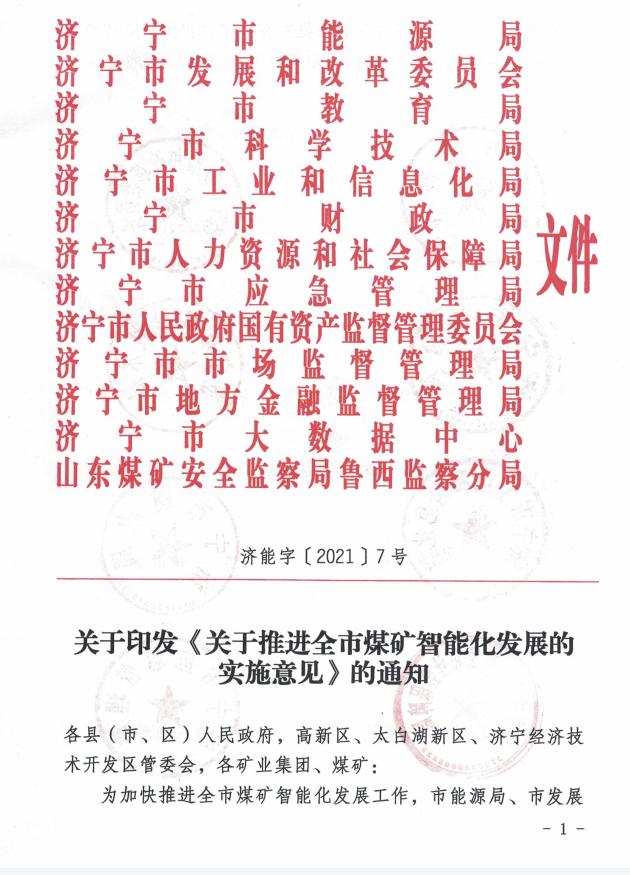 济能字〔2021〕7 号 关于印发《关于推进全市煤矿智能化发展的实施意见》的通知