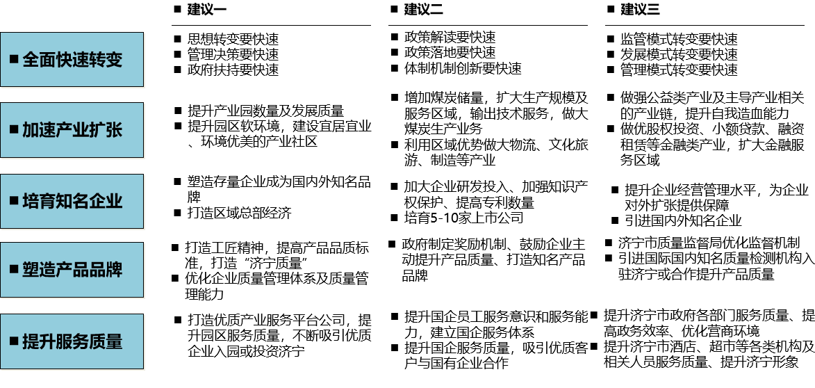 建立国资委产业协同平台,促进三层面的产业协同发展。由国资委主导、市政府支持,建立济宁产业协同平台,以此为依托,实现济宁市国有企业及民营企业、济宁市内企业与市外企业项目合作。