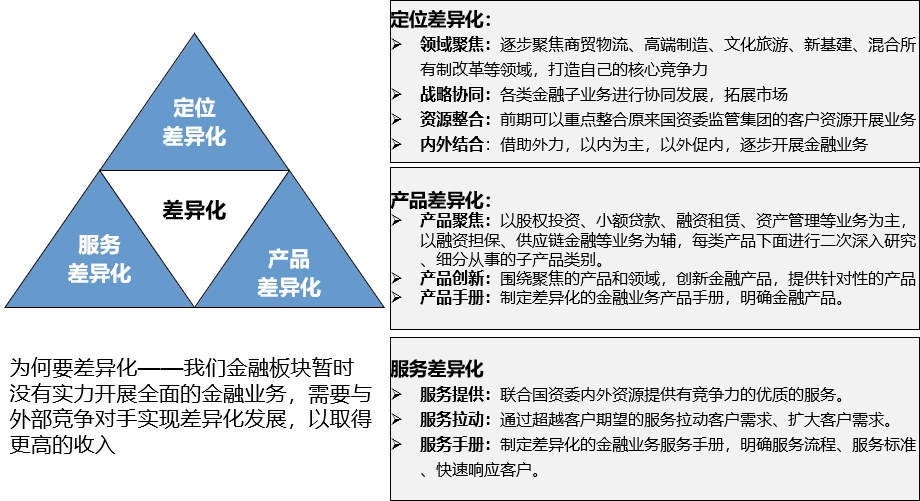 明确关键举措。明确国资委近三年5-10项关键举措;明确9大集团公司近三年5-10项关键举措;国资委对9大集团公司关键举措的实施给予指导、支持及协助。