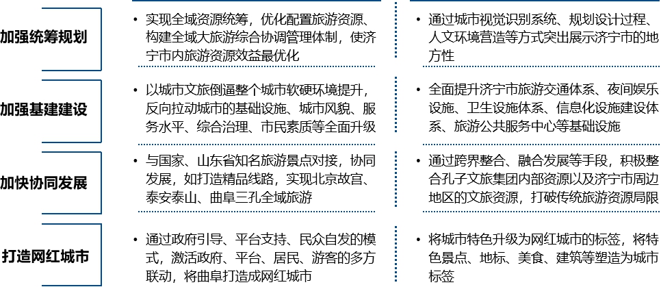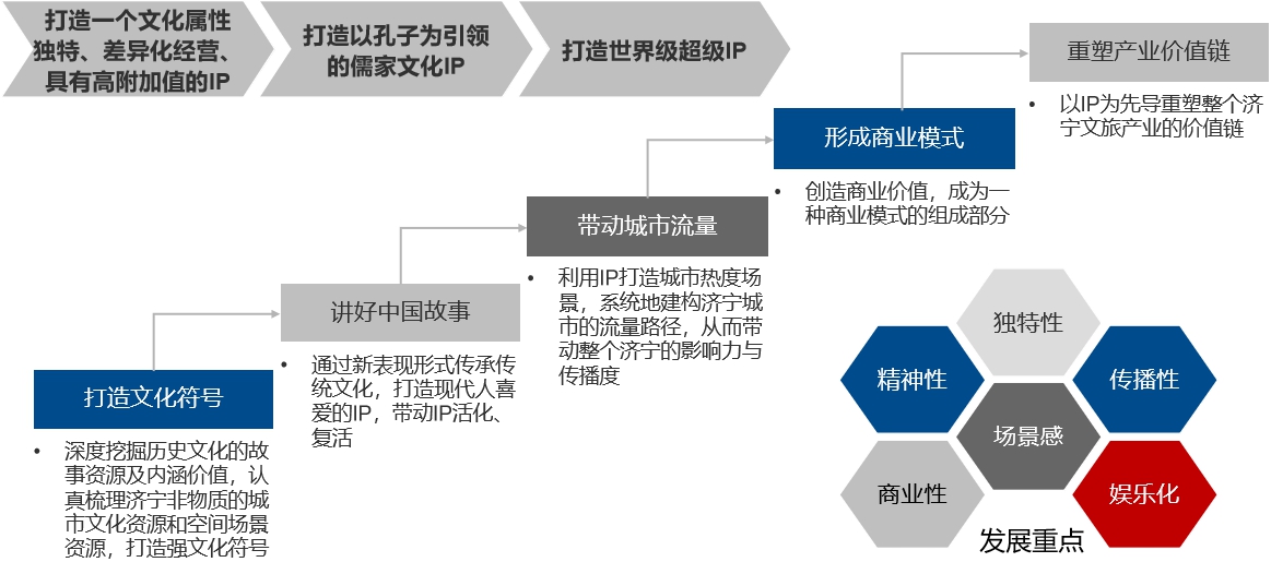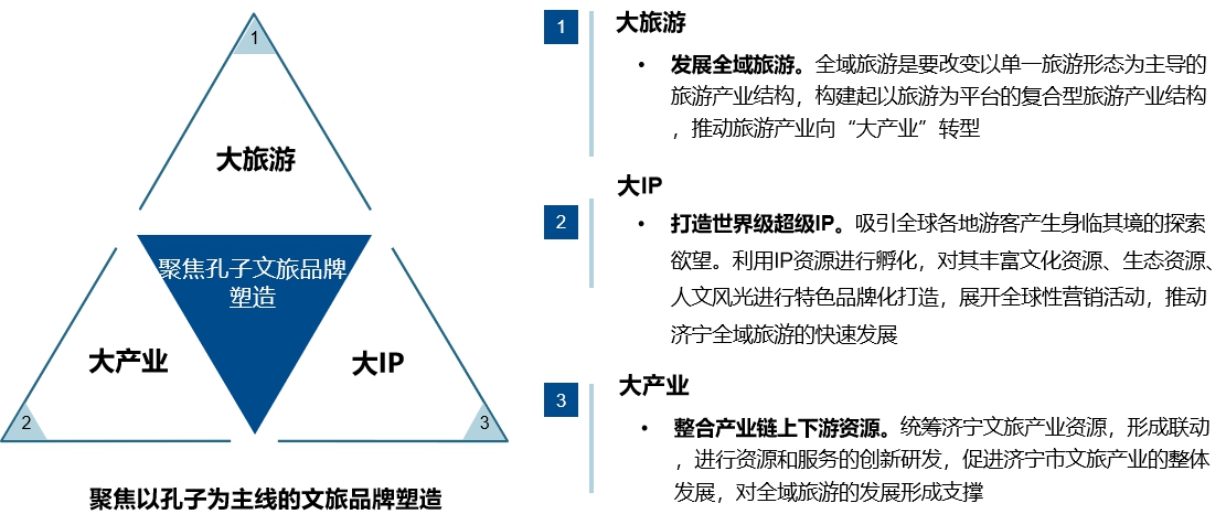 打造以文旅集团为主体建设济宁市文化旅游产业集群。打造以孔子为主线的文创品牌,打造以孔子为核心的演艺项目,打造文旅产业服务平台,使文化旅游产业有潜力成为济宁新旧动能转换排头兵、经济社会发展顶梁柱,成为推动区域经济转型升级的重要抓手之一。