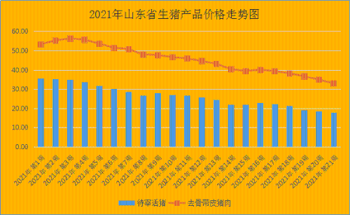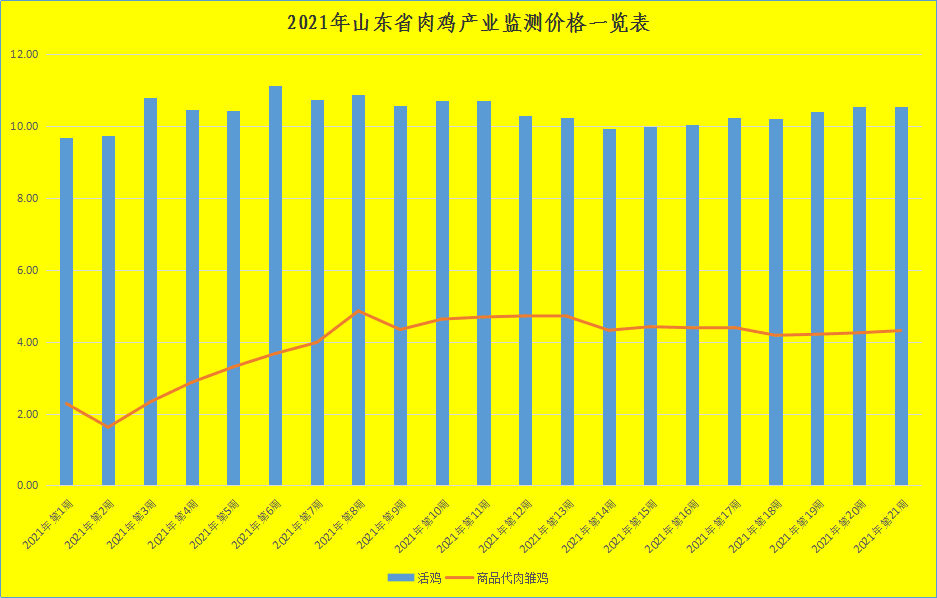 第21周,我省活鸡价格企稳,蓄势待发。第21周,活鸡价格为10.56元/公斤,同比升高22.93%,环比持平。其中最高地区潍坊安丘价格为18.00元/公斤,最低区域在莘县为8.50元/公斤。在鸡肉消费方面,第21周鸡肉冻品走货有所提升,市场交易量环比增加0.78%,白条鸡价格小幅向上,第21周白条价格为18.39元/公斤,同比升高8.37%,环比升高0.77%。