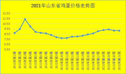 第21周,我省鸡蛋价格继续小幅向下。第21周,我省鸡蛋销售平均价格为9.14/公斤,同比升高52.84%,环比回落0.33%。就全省监测的26个价格县来看,目前我省最高价为9.60元/公斤,最低价为8.60元/公斤,蛋鸡配合料价格与上周相比升高0.63%。蛋雏鸡价格有所回落,截止第21周为3.31元/只,同比升高0.30%,环比降低0.90%。随着补栏高峰期过去,预计6月份蛋雏鸡价格或将维持偏弱震荡。