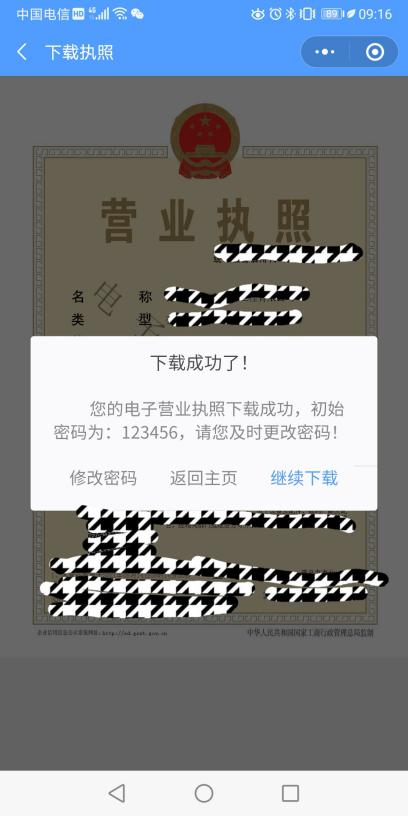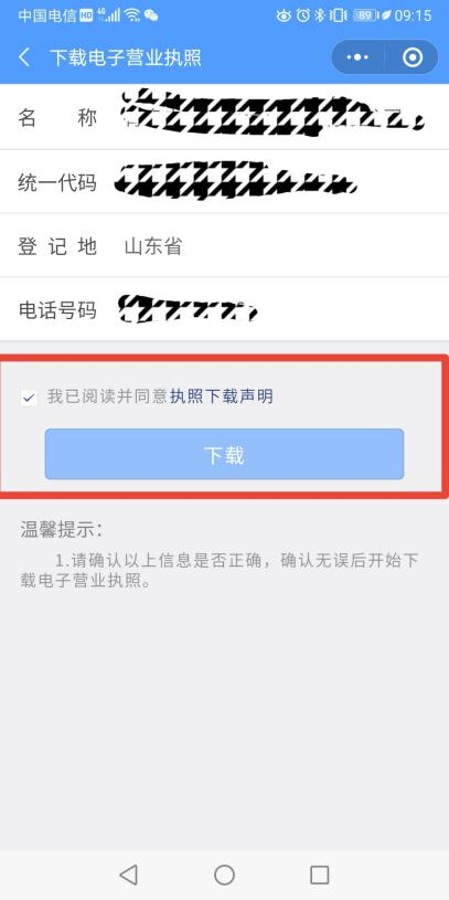 2、电子营业执照的下载只能通过手机等移动终端完成。