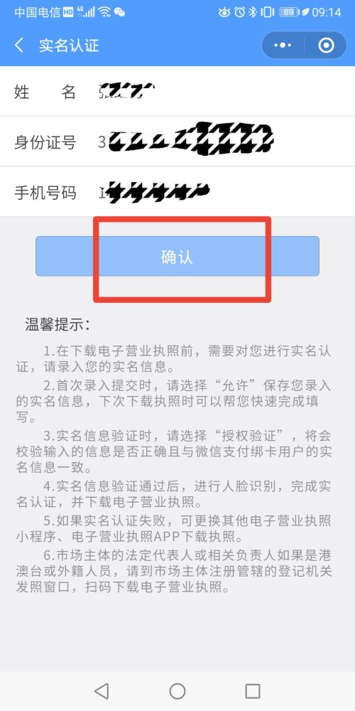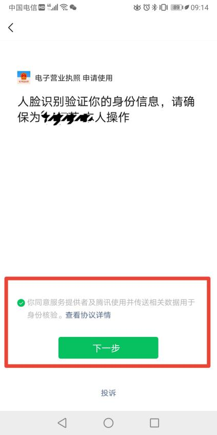 人脸识别:根据提示进行操作。只有通过人脸识别才可以下载电子营业执照。