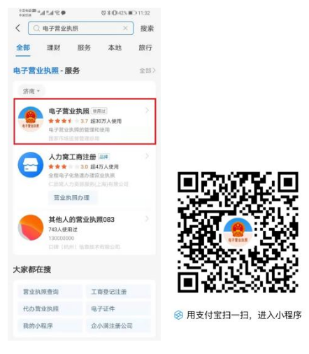 第一步:搜索小程序或扫描“电子营业执照支付宝小程序”二维码直接进入小程序。