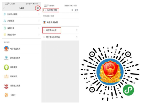 第一步:微信搜索“电子营业执照”小程序或扫描“电子营业执照微信小程序”二维码直接进入小程序。点击页面中的【下载执照】,前往下载电子营业执照。