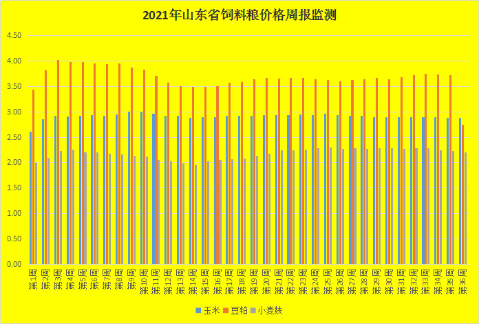 第36周,玉米价格企稳,豆粕价格小幅回升。截止36周末,玉米价格为2.88元/公斤,同比升高16.13%,环比持平;豆粕价格为3.75元/公斤,同比升高20.58%,环比升高0.54%;小麦麸震荡回落,为2.21元/公斤,同比升高22.78%,环比回落0.90%;进口鱼粉价格为12.88元/公斤,同比降低9.93%,环比持平。第36周,我省生猪、蛋鸡配合料高位震荡回升,肉鸡配合料回落。本周育肥猪配合饲料价格为3.53元/公斤,同比升高14.61%,环比升高0.28%;肉鸡配合料价格为3.71元/公斤,同比升高14.86%,环比回落0.27%;蛋鸡配合料为3.23元/公斤,同比升高19.63%,环比升高0.31%。