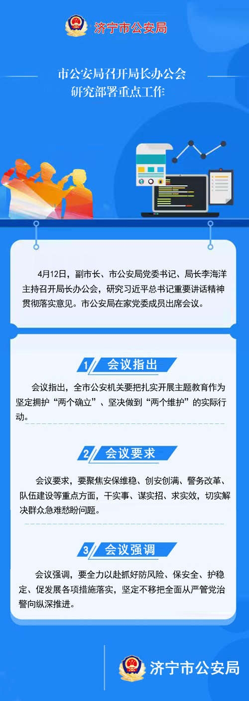 2023年4月12日,副市长、市公安局党委书记、局长李海洋主持召开局长办公会,具体事项纪要如下: