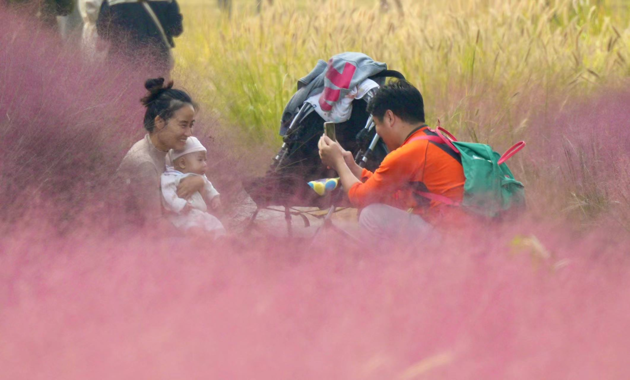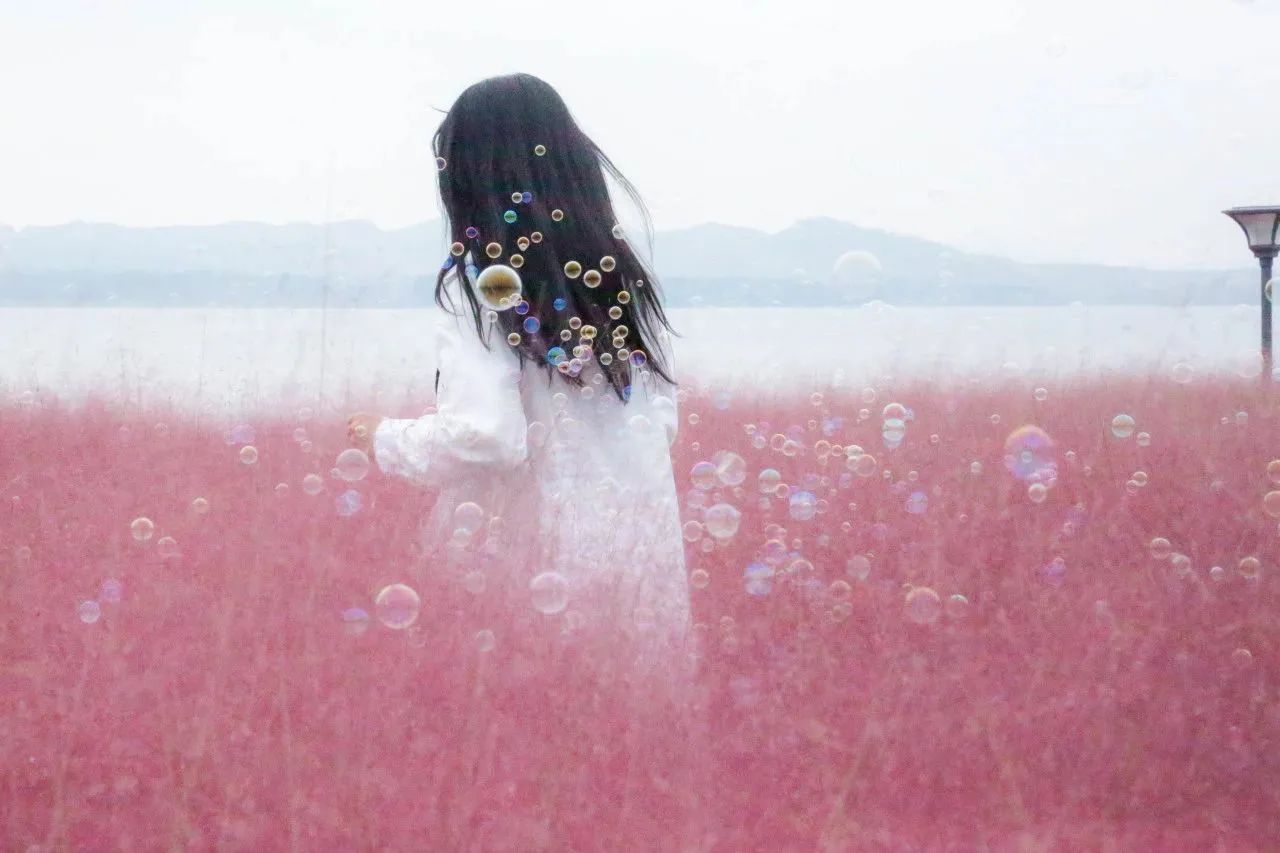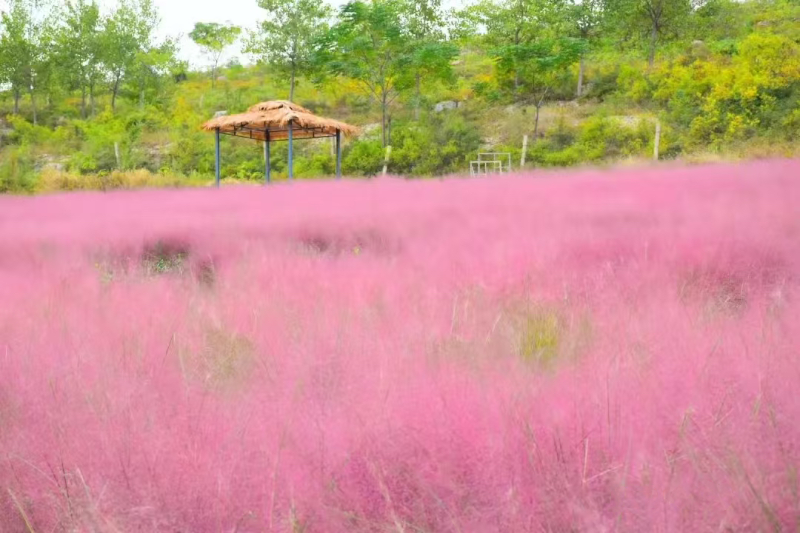 粉黛草根茎柔软 从远处看毛茸茸的 微风拂过 一片粉嘟嘟的海洋随风晃动 似棉花、似云朵 令人一眼就跌进童话仙境