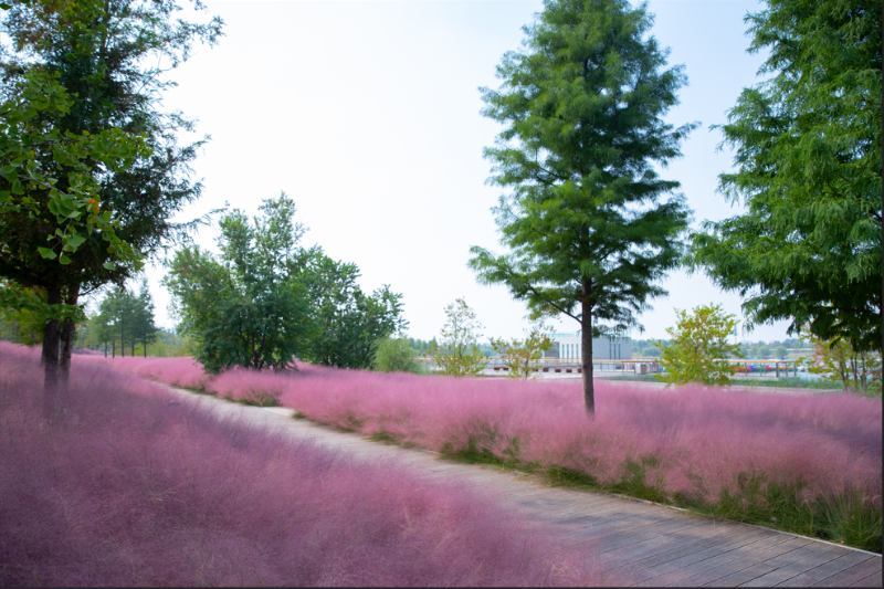 (温馨提示:粉黛乱子草生长周期长,从播种到开花要2年时间,花海内有步行道可拍照打卡,请大家不要随意踩踏花海~)