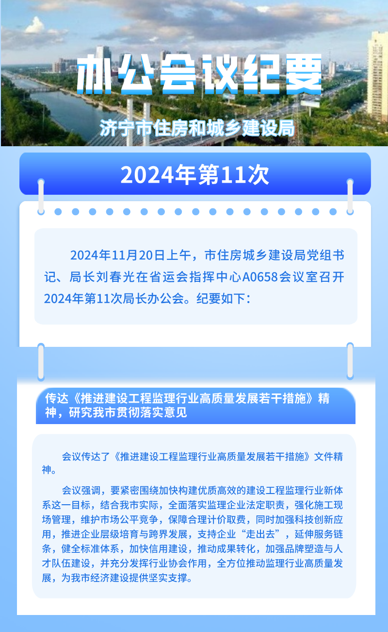 济宁市住房和城乡建设局2024年第11次办公会会议纪要