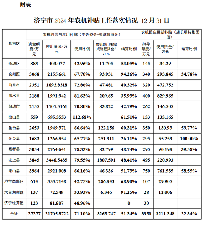 附表:济宁市2024年农机补贴工作落实情况-12月31日