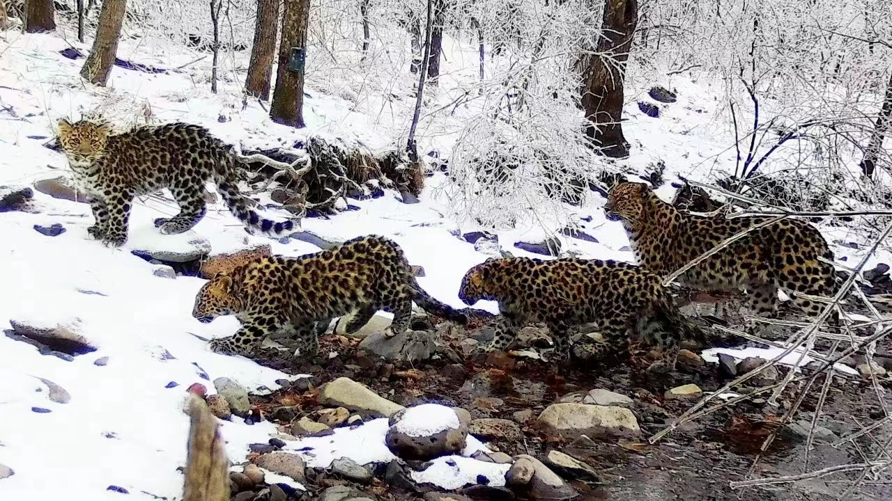 野生东北豹“4豹同框”(东北虎豹国家公园供图)