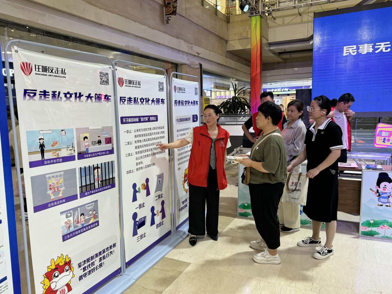 活动中,任城区打私办通过摆放易拉宝、设立群众咨询台、宣传屏播放“套代购”走私相关宣传视频及标语,结合典型警示案例现场讲解相关法律常识,发放反走私宣传手册、宣传布袋等,向相关商户及来往群众宣讲离岛免税“套代购”走私方面的知识,营造全民反走私良好氛围。