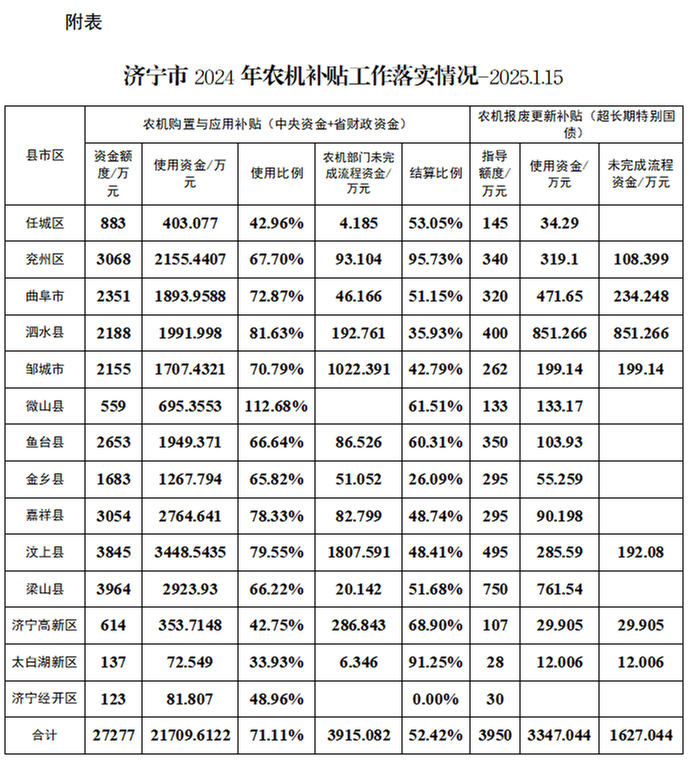 附表:济宁市2024年农机补贴工作落实情况-2025.1.15