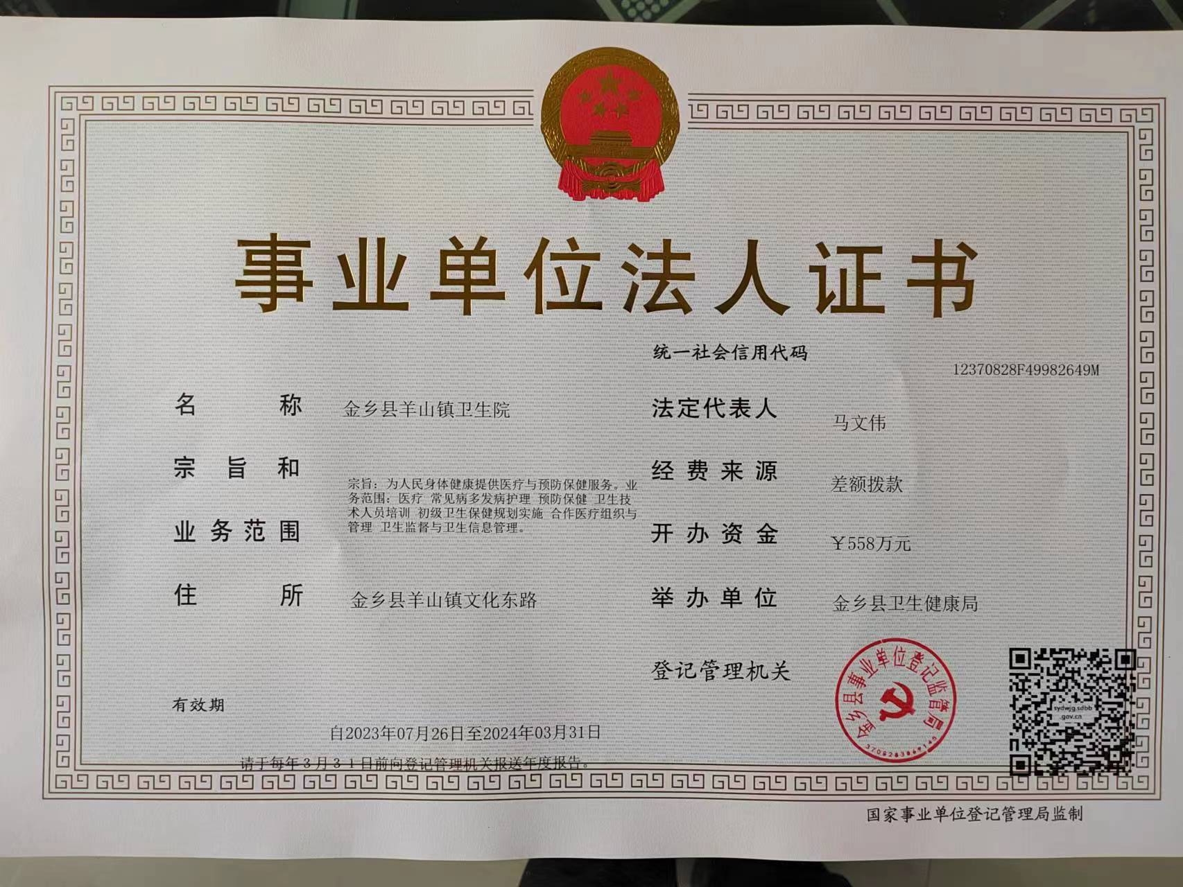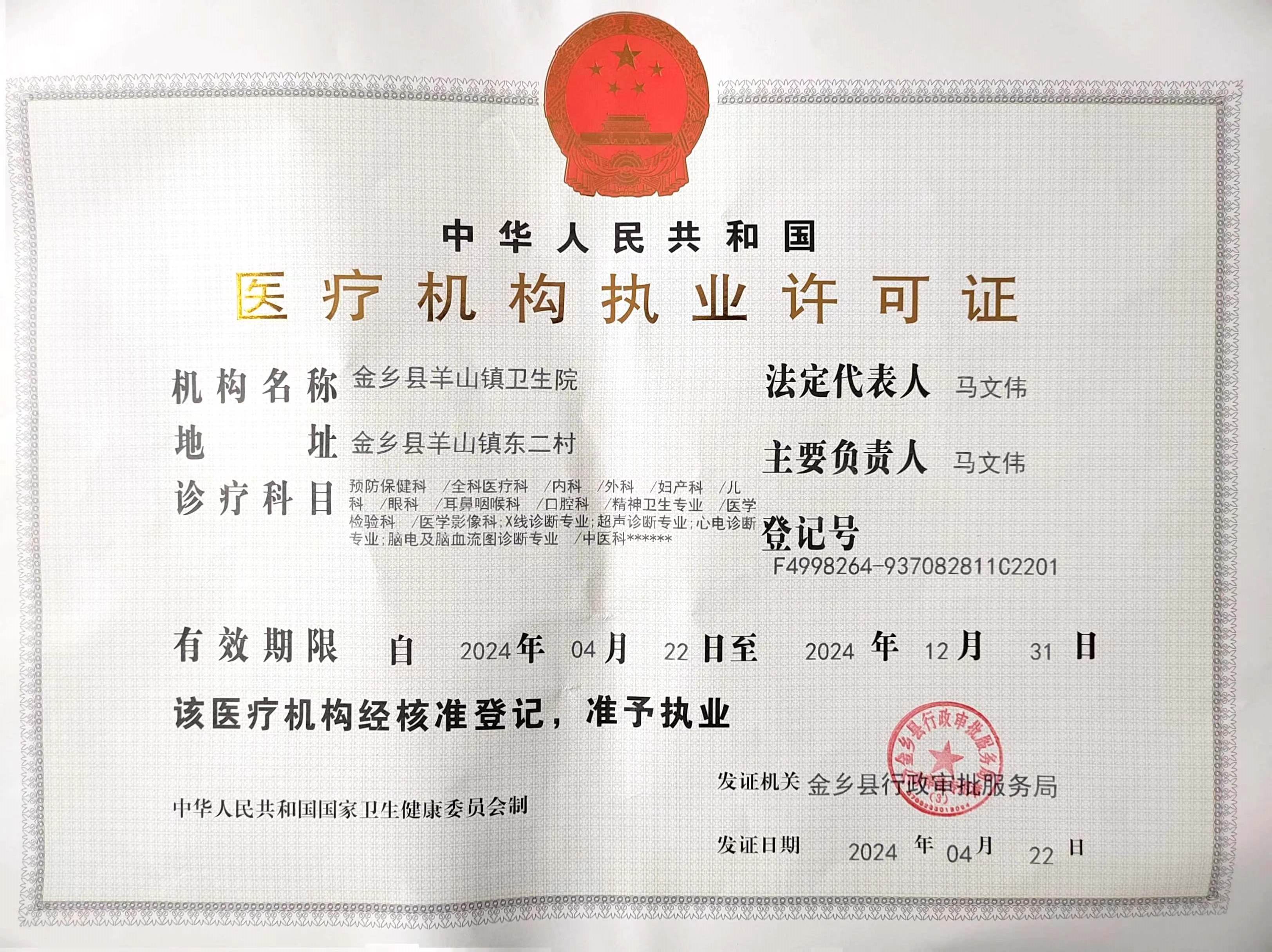 详细地址 | 金乡县羊山镇驻地 | 主管部门 | 金乡县卫生健康局 |
