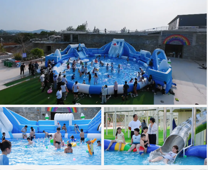 如果你是亲子家庭,5000㎡的水上乐园绝对是夏日首选。超大泳池、趣味滑道、亲子戏水区让孩子能撒欢一整天,家长则可以在旁边的遮阳伞下歇脚,看青山映碧水,惬意得很。