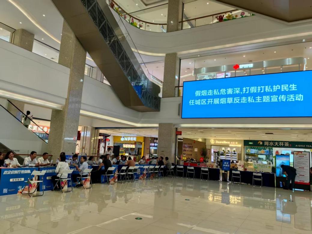 近日,济宁“政企会客厅进商圈·助力金秋消费季”首场活动走进济州上城,任城区打私办联合区行政审批服务局、观音阁街道,依托该活动向企业与群众开展以“烟走私危害深 打假打私护民生”为主题的烟草反走私主题宣传活动。