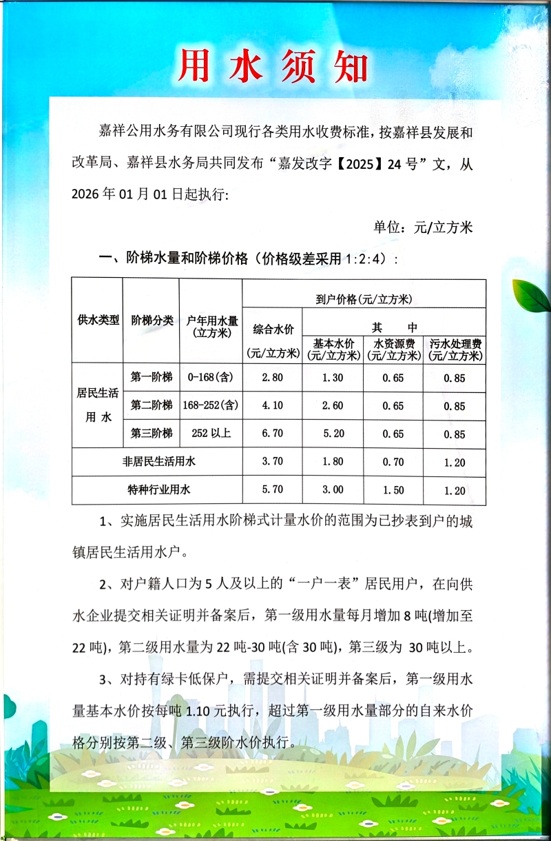嘉祥公用水用水收费价格收费标准