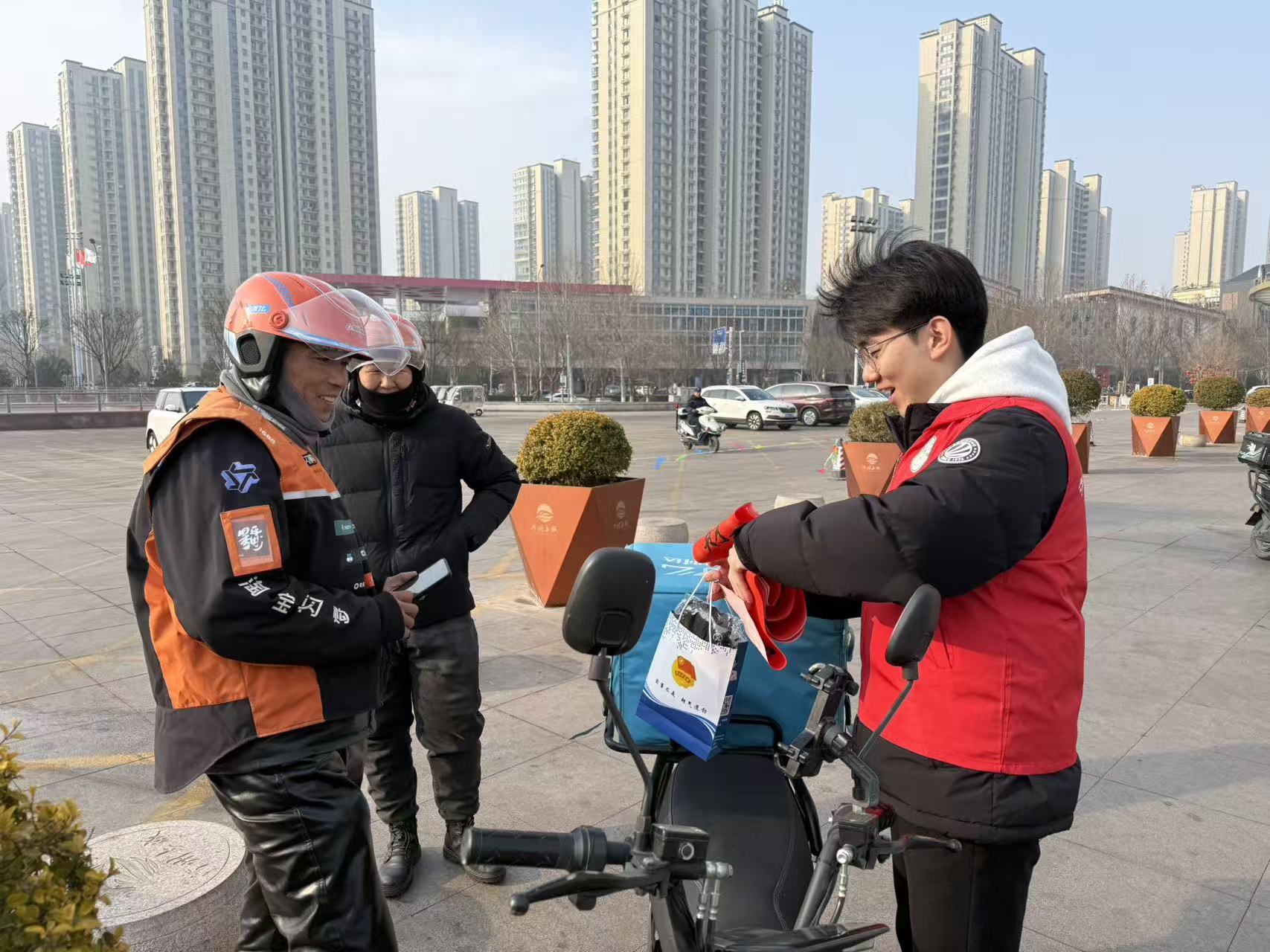 本次活动组织10名青年志愿者参与,聚焦反诈反走私知识普及与青年群体关怀,现场通过发放宣传资料、面对面讲解等形式,向社区居民普及常见诈骗手段和走私危害,帮助大家提升识别和防范能力,筑牢安全防线。活动同时关注新兴领域青年群体,志愿者为“两司两员”(指快递员、网约车司机等新就业形态劳动者)代表送上暖冬礼包,传递社会关怀与温暖,增强其归属感和获得感。