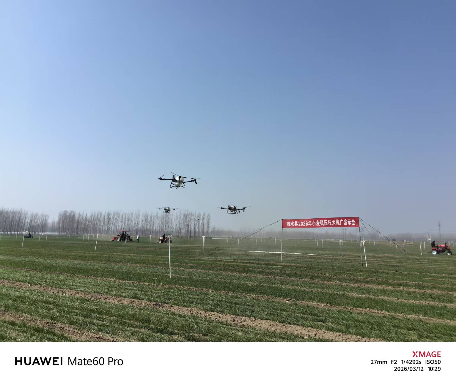 本次现场演示会聚焦小麦春季田间管理核心需求,以现场实操演示为主要形式,精准推广现代农机化技术。一是麦田镇压技术现场演示。早春麦田机械化镇压是控旺转壮、提墒节水重要措施,对长势过旺麦田在返青至起身期进行镇压,控旺转壮、防倒伏。特别是对于秋种时整地粗放、坷垃多的麦田,进行镇压作业后可沉实土壤、弥合裂缝,减少水分蒸发,起到提墒、保墒、抗旱作用。二是农用无人机施肥、植保作业演示。无人机植保作业具有高效快捷、省工省时、节水节药等突出优势,能够实现低空精准喷施、均匀雾化、全覆盖无死角,大幅提升小麦田间施肥、病虫害防控效率,有效降低人工成本和劳动强度,同时减少农药浪费与环境污染,是现代小麦生产中节本增效、绿色防控的关键技术装备。