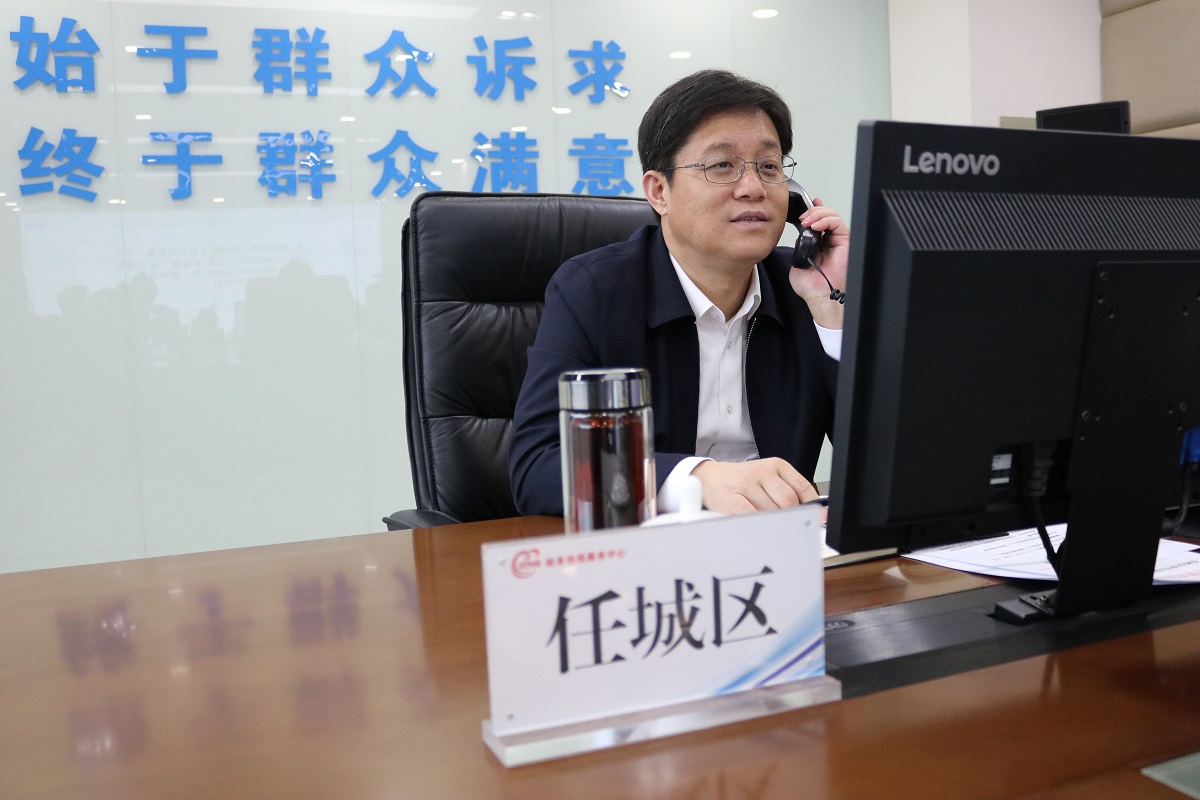 3月18日任城区区委书记张令华接听政务服务便民热线