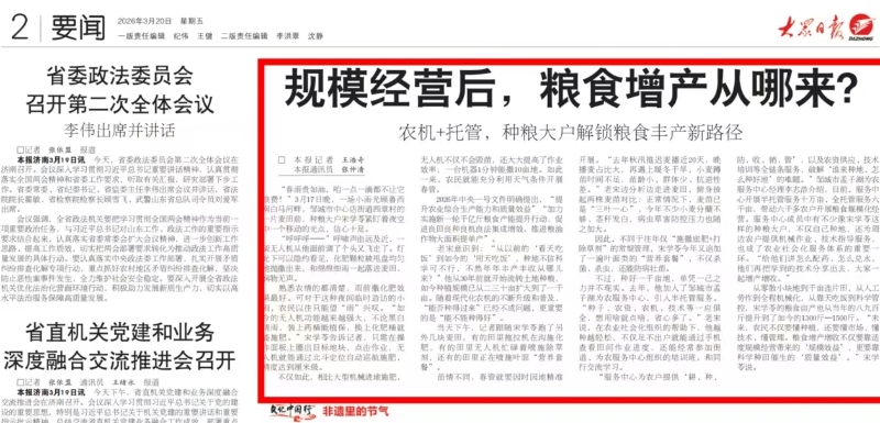 《大众日报》:农机+托管,山东种粮大户解锁粮食丰产新路径